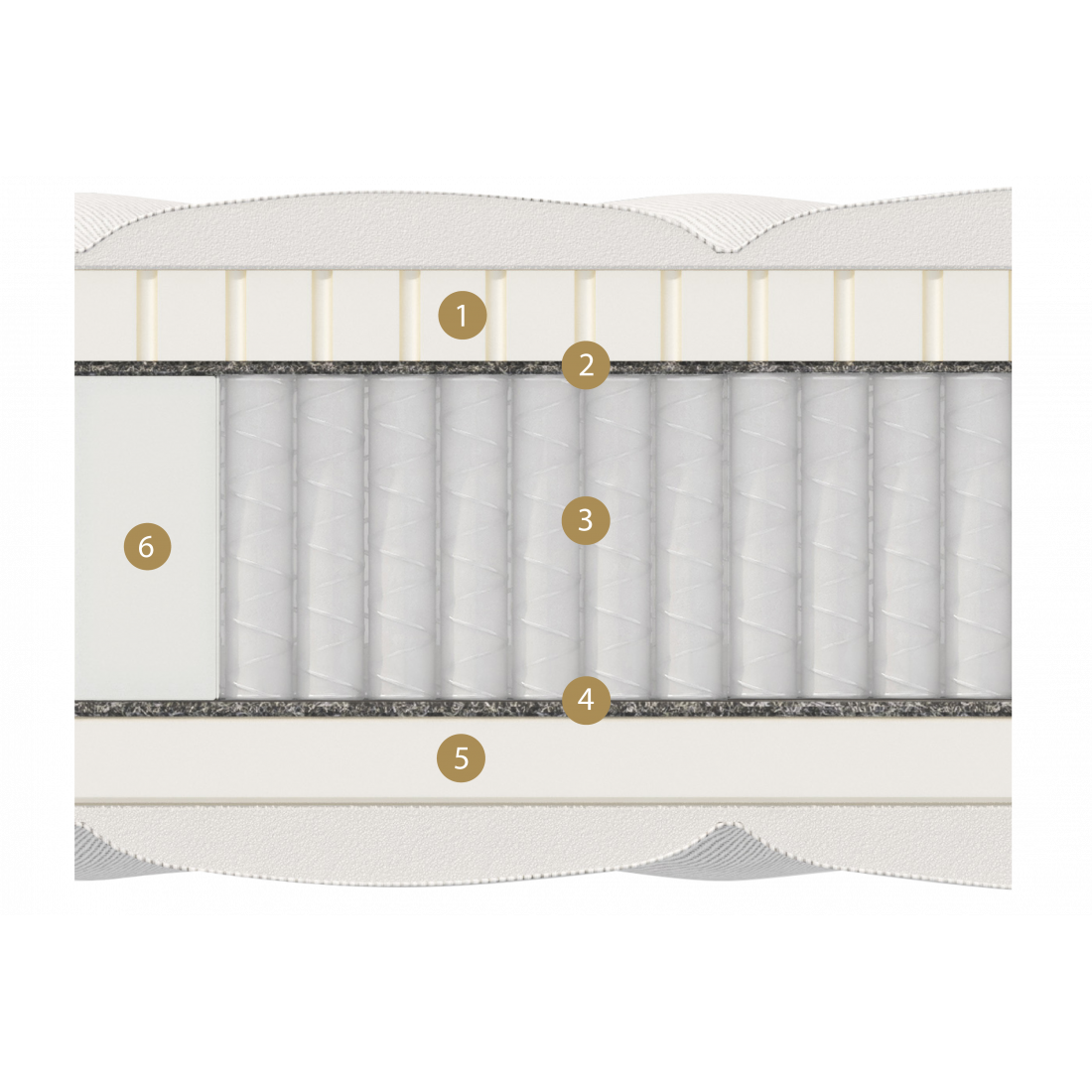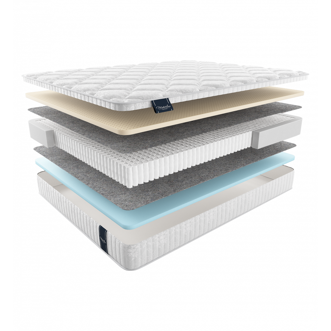 Одна из сторон модели содержит натуральный латекс, вторая – близкий к нему материал Natural Foаm. Внутри пружинный блок Мультипакет, он более точечно реагирует на вес спящего, создавая анатомический эффект, повторяющий контуры тела, и ортопедический - благодаря меньшему диаметру пружин из легированной стали.