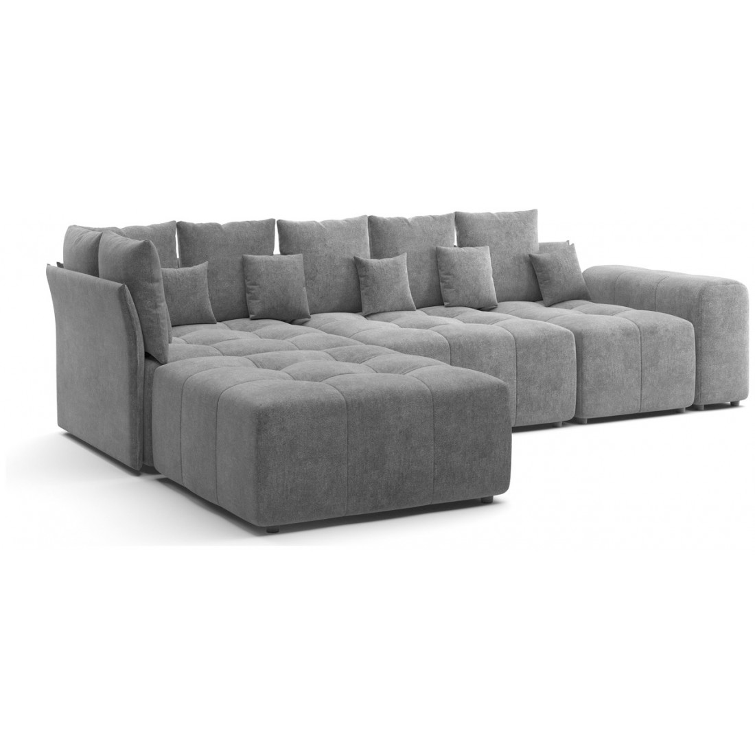 Модульный диван «Торонто» — это отличный вариант для тех, кому сложно подобрать монолитную конструкцию из-за сложной конфигурации помещения, а также тех, кто любит экспериментировать и часто делает перестановку. С его помощью можно легко изменить интерьер, превратив часть конструкции в пуф, кресло или софу.