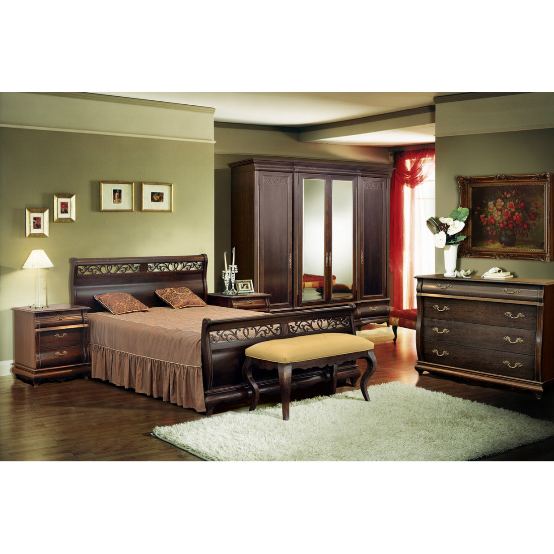 Популярная коллекция "Оскар" фабрики Молодечномебель объединяет в себе наборы для гостиной и столовой, библиотеки и спальни. Последний (но не по значению) относится к классическому стилю с элементами арт-деко. Фасады и объемные цоколи моделей выполнены в округлых изогнутых формах с волнообразной кромкой. В изголовьях и изножьях кроватей, на фасадах шкафов и других предметах присутствует единый резной растительный узор. Помимо привычных комодов и прикроватных тумб, в коллекцию также добавлен прикроватный сундук для хранения постельных принадлежностей. Мягкий элемент с кожаной обивкой на крышке позволяет с комфортом присесть на сундук как на банкетку. Кстати, банкетки разных размеров также представлены в коллекции «Оскар». Коллекция выполнена с использованием массива и шпона дуба, а спальни из дуба, как известно, отличаются надежностью и безопасностью. Дополнительной гарантией безопасности выступают и нетоксичные лаки и краски на водной основе, деликатно подчеркивающие красивый узор древесины. Мебель для спальни «Оскар» поставляется в насыщенном темном оттенке «Орех» и мягкой «Белой эмали с темной патиной».